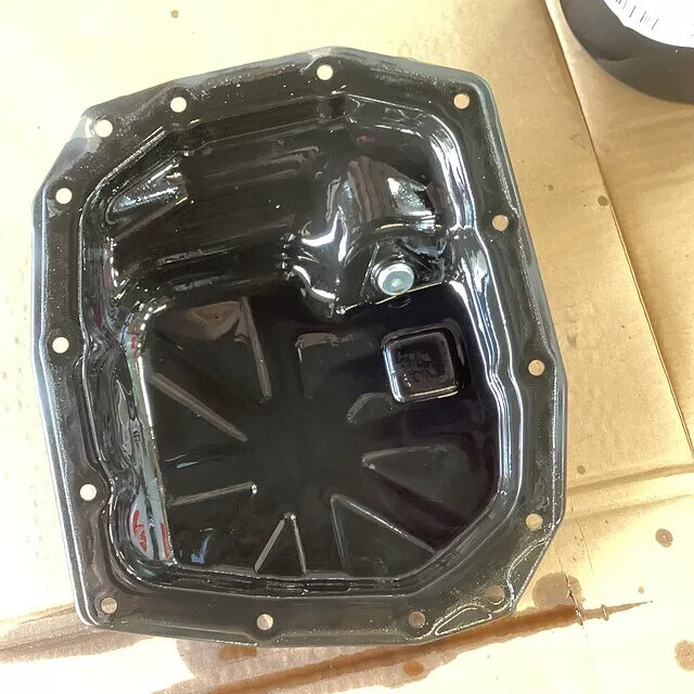 オイルパンの底には鉄粉のような銀色をした粉末状のスラッジが付着しています。