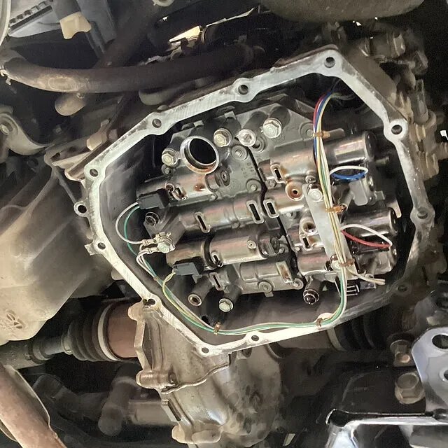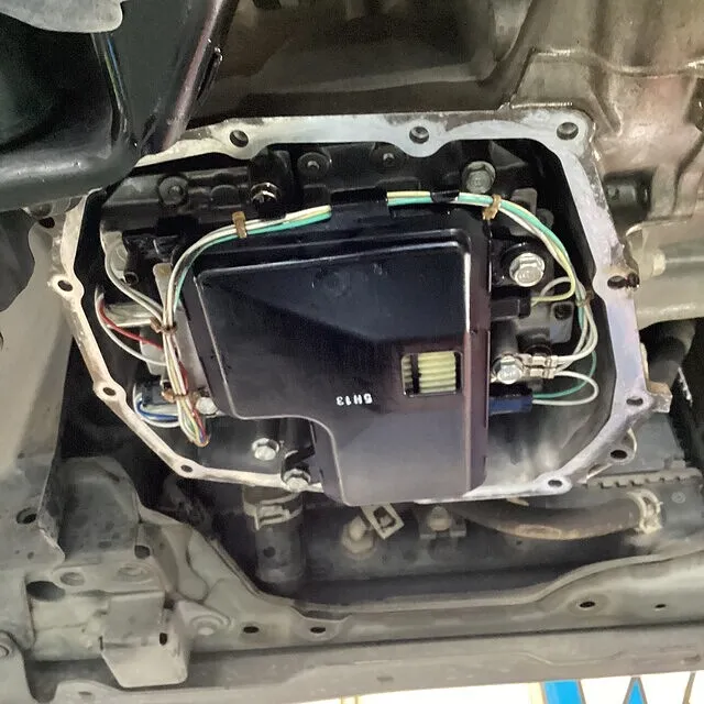 ドレンからCVTFを抜いて、オイルパンを取り外しました。
