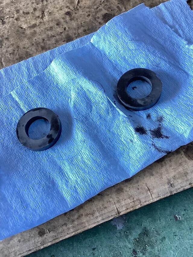 右側が取り外したストレーナです。内部のフィルターが真っ黒に汚れているのが分かります。