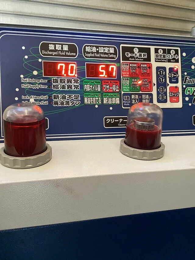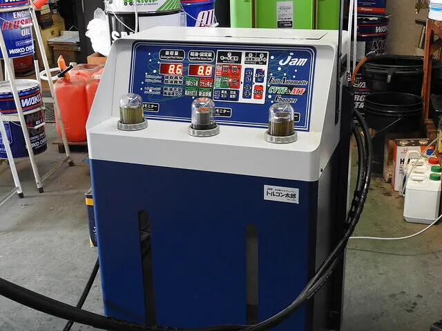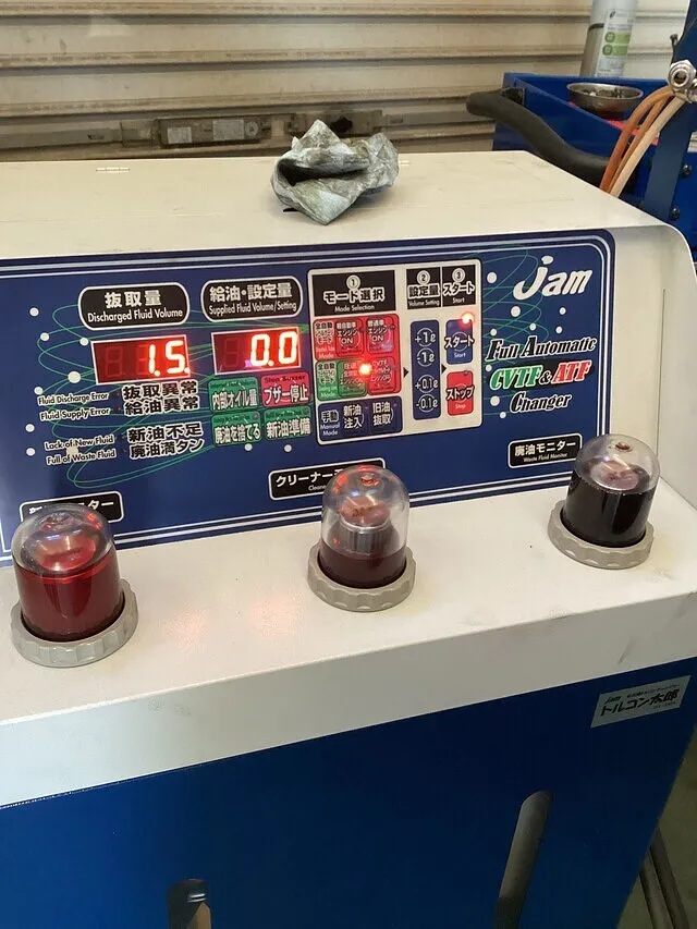 洗浄工程の圧送交換では、リーズナブルなアイシンCVTフルードを使用しました。