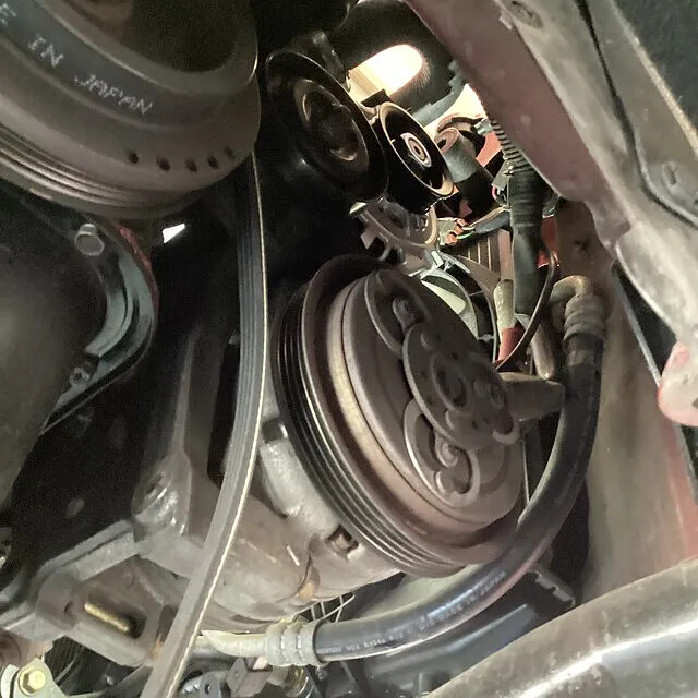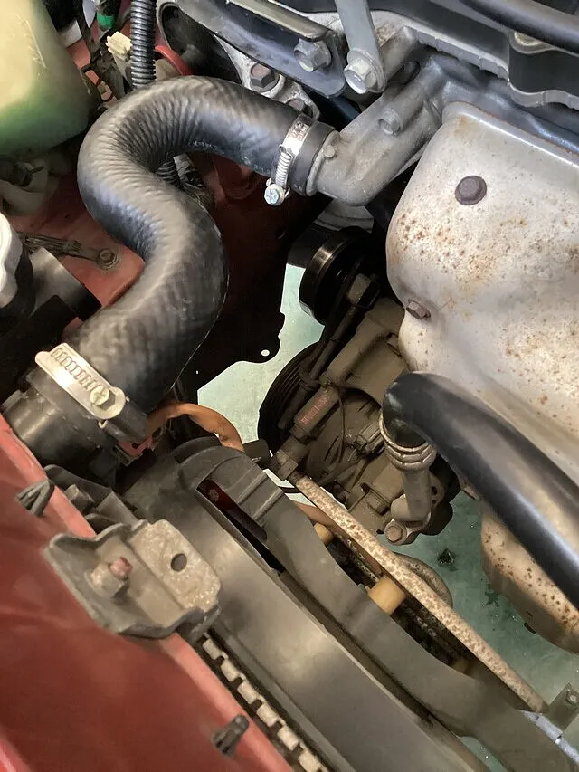 取外しの逆の手順でリビルトのオルタネータとベルトを取り付けます。